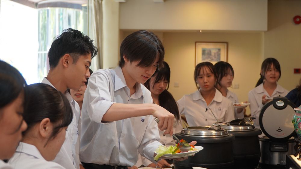 ホテル泊タイプの生徒の夕食は中華料理のコースです。おいしい!