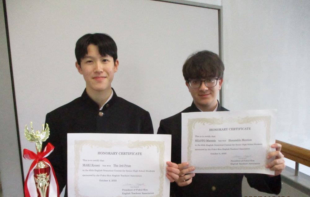 その結果,第1部で1年生のシロト マルセロさんが優良賞を受賞,第2部で1年生の牧 凉生さんが第3位に輝きました!おめでとうございます!