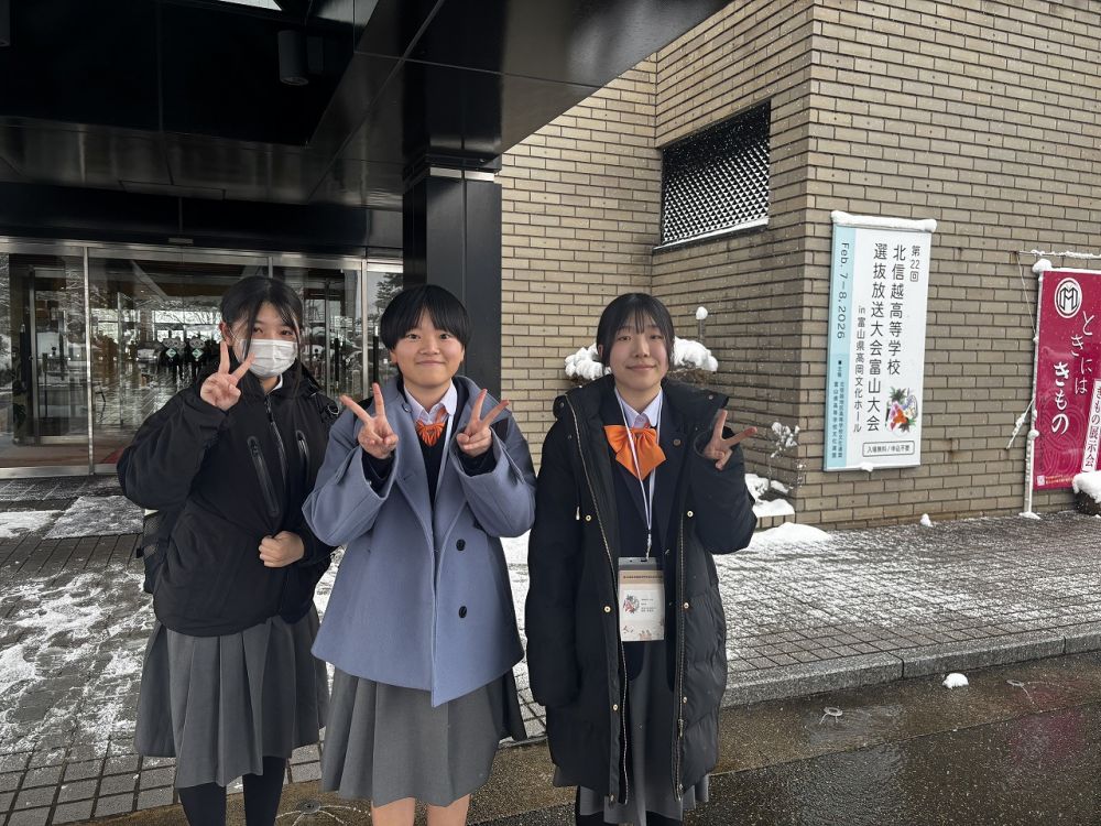 2月7日から8日,富山県高岡市にある高岡文化センターおいて,第22回北信越高等学校選抜放送大会富山大会が開催されました。放送部からはアナウンス部門に1名,朗読部門2名が出場しました。以下、結果です。